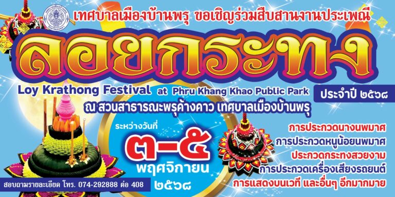ข่าวประชาสัมพันธ์ เทศบาลเมืองบ้านพรุ ขอแจ้งการปรับรูปแบบการจัดงานประเพณีลอยกระทง ประจำปี 2568 ซึ่งกำหนดจัดขึ้นในวันที่ 4 – 5 พฤศจิกายน 256828 ตุลาคม 25683 พฤศจิกายน 2025