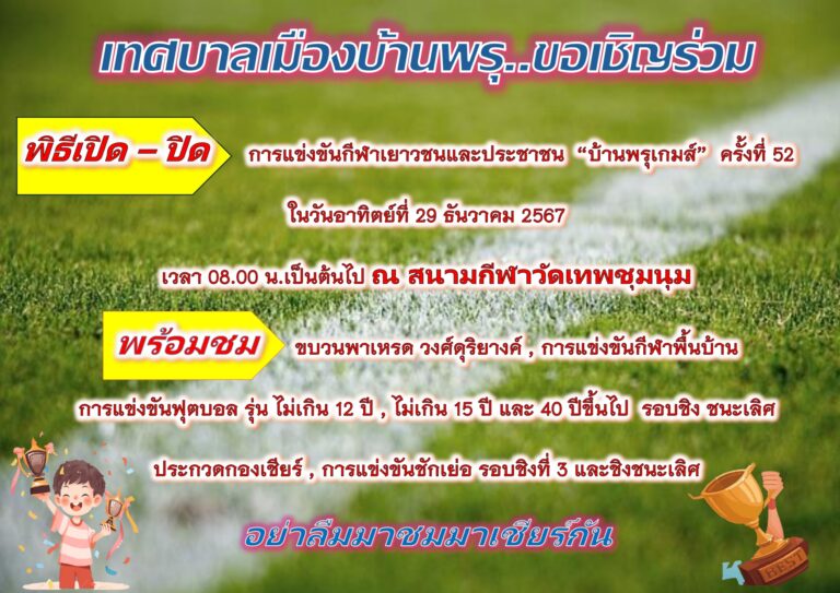 ข่าวประชาสัมพันธ์ เทศบาลเมืองบ้านพรุ ขอเชิญชวน ร่วมพิธีเปิด-ปิด การแข่งขันกีฬาเยาวชนและประชาชน #บ้านพรุเกมส์ ครั้งที่ 5223 ธันวาคม 2567