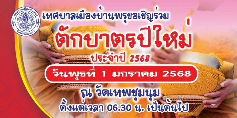 ข่าวประชาสัมพันธ์ เนื่องในวาระดิถีขึ้นปีใหม่ ขอเชิญประชาชนชาวบ้านพรุร่วมทำบุญตักบาตรข้าวสารอาหารแห้ง วันพุธที่ ๑ มกราคม ๒๕๖๘ เริ่มเวลา ๐๖.๓๐ น. ณ วัดเทพชุมนุม23 ธันวาคม 256723 ธันวาคม 2024