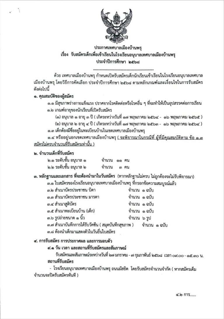 ข่าวประชาสัมพันธ์ ประกาศเทศบาลเมืองบ้านพรุ 🏫รับสมัครเด็กเพื่อเข้าเรียนในโรงเรียนอนุบาลเทศบาลเมืองบ้านพรุ16 มกราคม 256816 มกราคม 2025