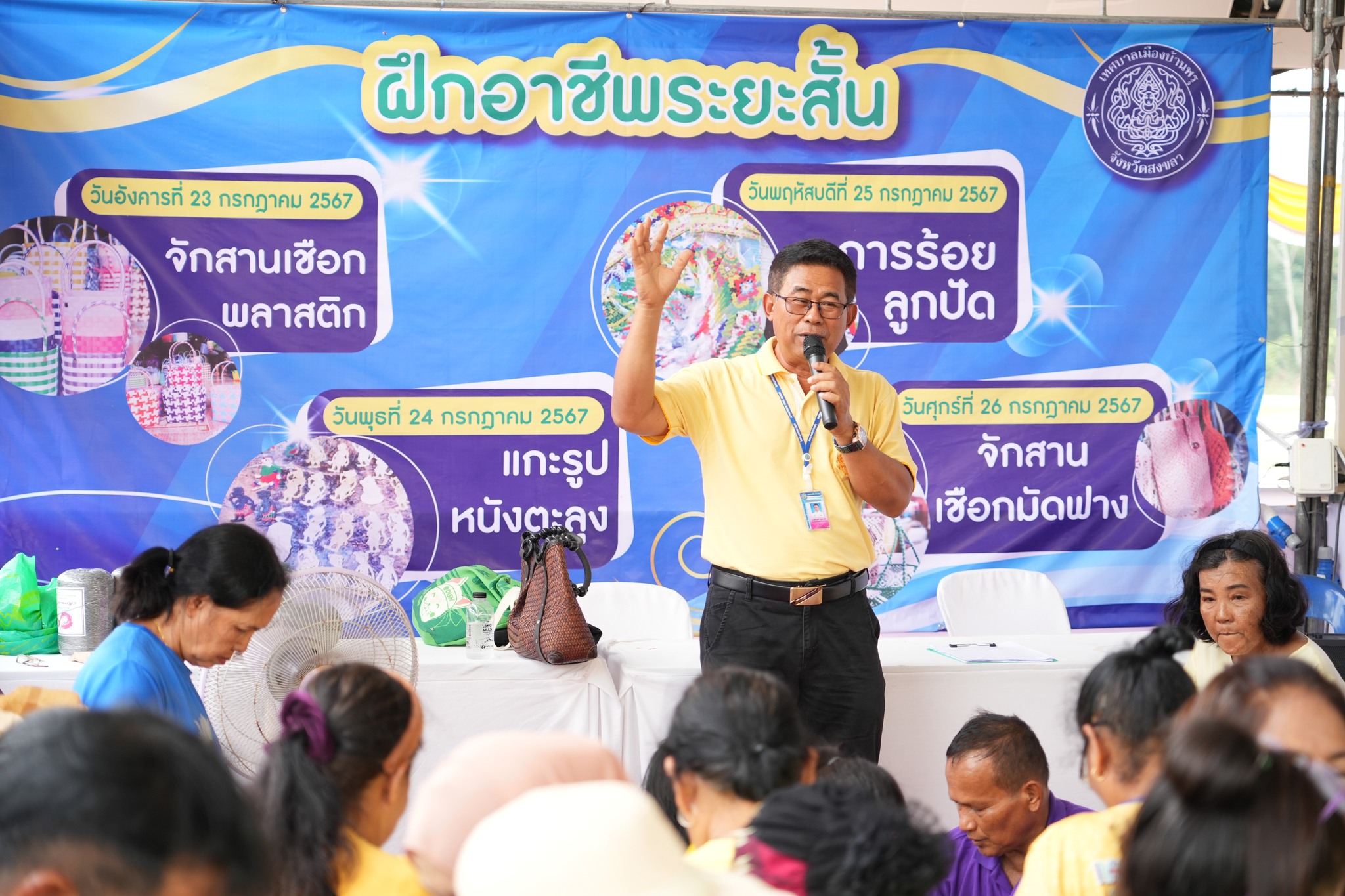 วันที่ 26/07/67 💖 นายธีรยุทธ์ เบ็ญล่าเต๊ะ💖 #รองนายกเทศมนตรีเมืองบ้านพรุ ได้เยี่ยมบูธกิจกรรม #สาธิตจักสานเชือกมัดฟาง ซึ่งเป็นการฝึกอบรมอาชีพระยะสั้น โดยมี #ชมรมผู้สูงอายุเทศบาลเมืองบ้านพรุ เข้าร่วมกิจกรรมมากมายหลายคน เพื่อฝึกอาชีพและใช้เวลาว่างให้เป็นประโยชน์ และเป็นการให้ผู้สูงอายุในชมรมทำกิจกรรมร่วมกัน … หากใครสนใจกิจกรรมดีๆ แบบนี้ มาเยี่ยมชมและร่วมกิจกรรมได้นะครับ ที่งาน มหกรรมอาหารและของดีเมืองบ้านพรุ ประจำปี 2567 ที่ตลาดน้ำบ้านพรุ 💓