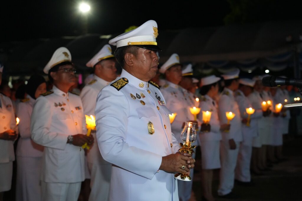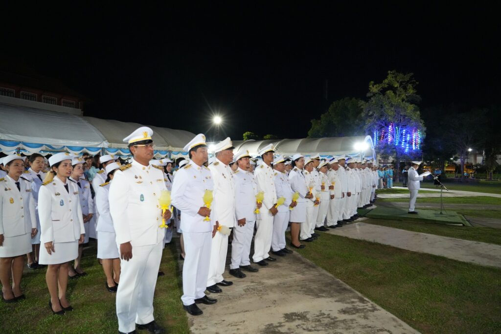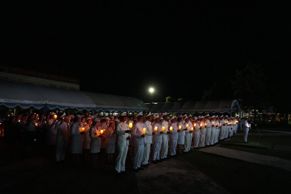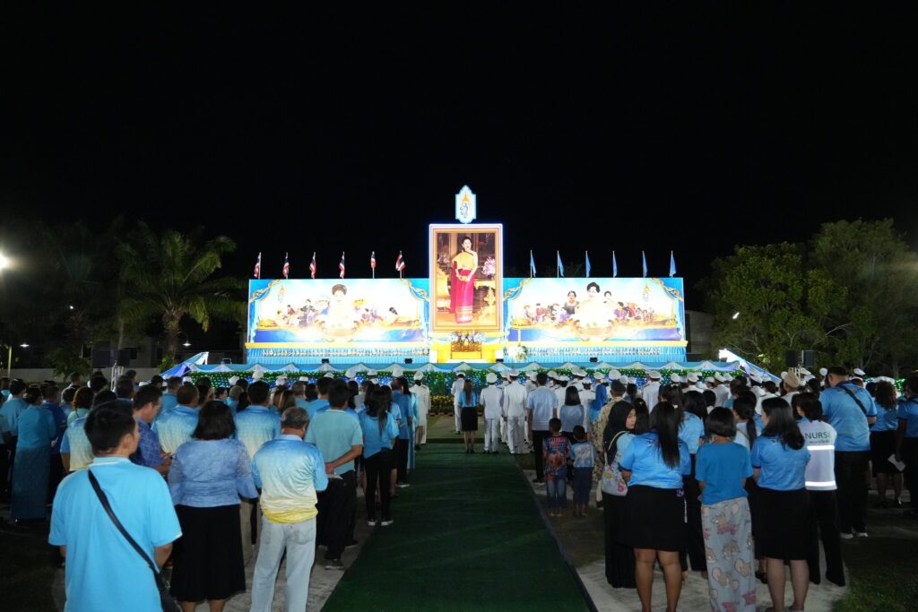 🇹🇭 เวลา 19.00น. นายวินัย รัตนพันธ์ นายกเทศมนตรีเมืองบ้านพรุ (ประธานในพิธี) มาถึงบริเวณพิธี และถวายความเคารพหน้าพระบรมฉายาลักษณ์ สมเด็จพระนางเจ้าสิริกิติ์ พระบรมราชินีนาถ พระบรมราชชนนีพันปีหลวง และวางพานพุ่มทอง – พุ่มเงิน เปิดกรวยกระทงดอกไม้ และจุดเทียนมหามงคล พร้อมกล่าวคำกราบบังคมทูลถวายพระพรชัยมงคล สมเด็จพระนางเจ้าสิริกิติ์ พระบรมราชินีนาถ พระบรมราชชนนี พันปีหลวง ต่อจากนั้นประธานในพิธี รับมอบโคมเทียนและจุดเทียนให้ประชาชนที่มาเข้าร่วมพิธี พร้อมร่วมขับร้องเพลง “สดุดีพระแม่ไทย” และร่วมกล่าวนำ ” ทรงพระเจริญ” 3 ครั้ง เป็นอันเสร็จพิธี