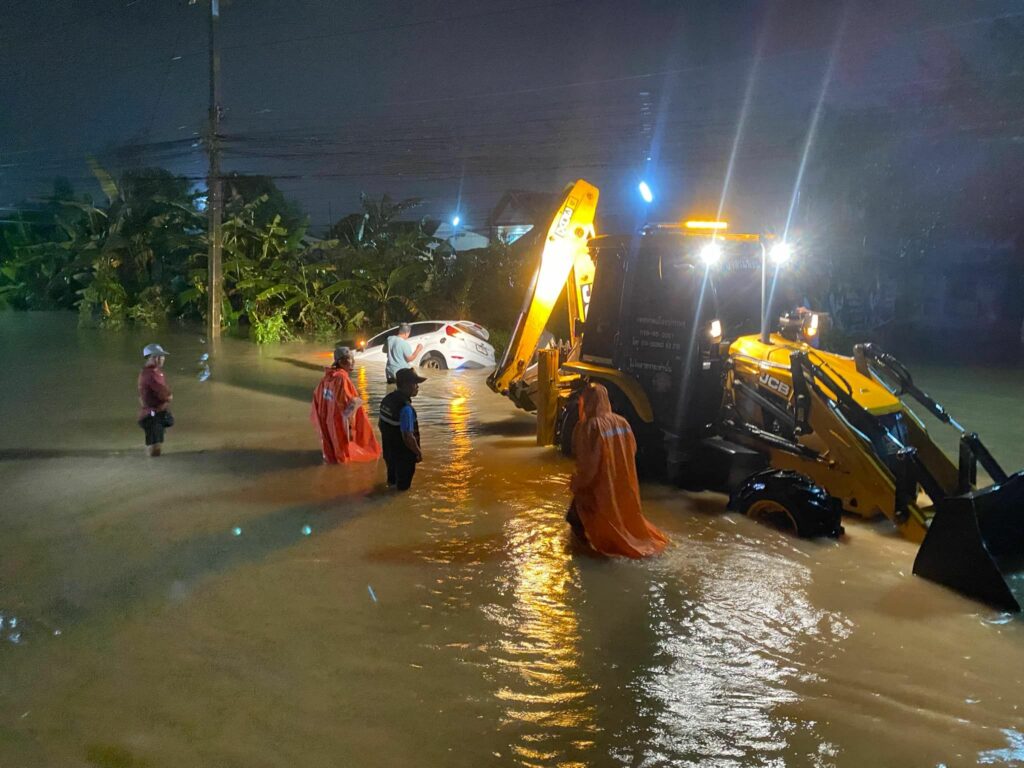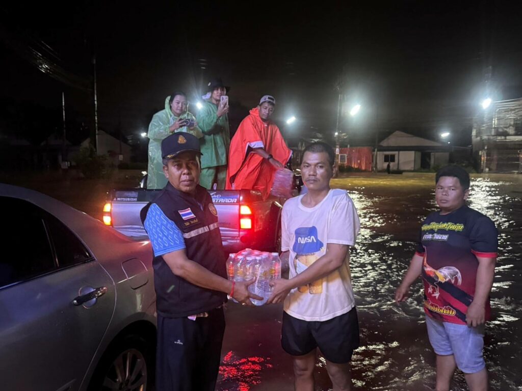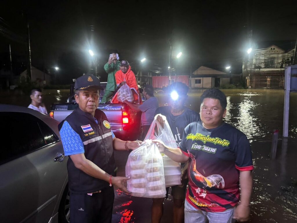 นายกวินัย รัตนพันธ์ นายกเทศบาลเมืองบ้านพรุ ลงพื้นมอบอาหารและน้ำดื่ม พร้อมให้กำลังใจแก่ผู้ประสบภัยน้ำท่วม และประสานงานให้การช่วยเหลือรถประสบอุบัติเหตุตกคู บริเวณ หมู่บ้านจุลทอง ชุมชนเขต 6