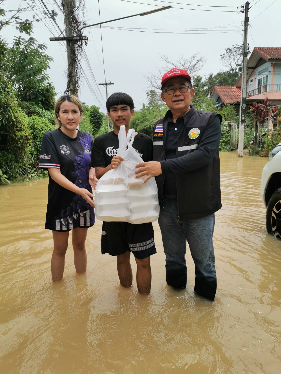 วันที่ 30 พฤศจิกายน 2567 นายธีรยุทธ์ เบ็ญล่าเตะ รองนายกเทศมนตรีเมืองบ้านพรุ ลงพื้นที่ มอบข้าว+น้ำ+ยารักษาโรค บริเวณชุมนุมบ้าน บางศาลา ช่วยเหลือประชาชนผู้ประสบภัยชาวบ้านพรุ