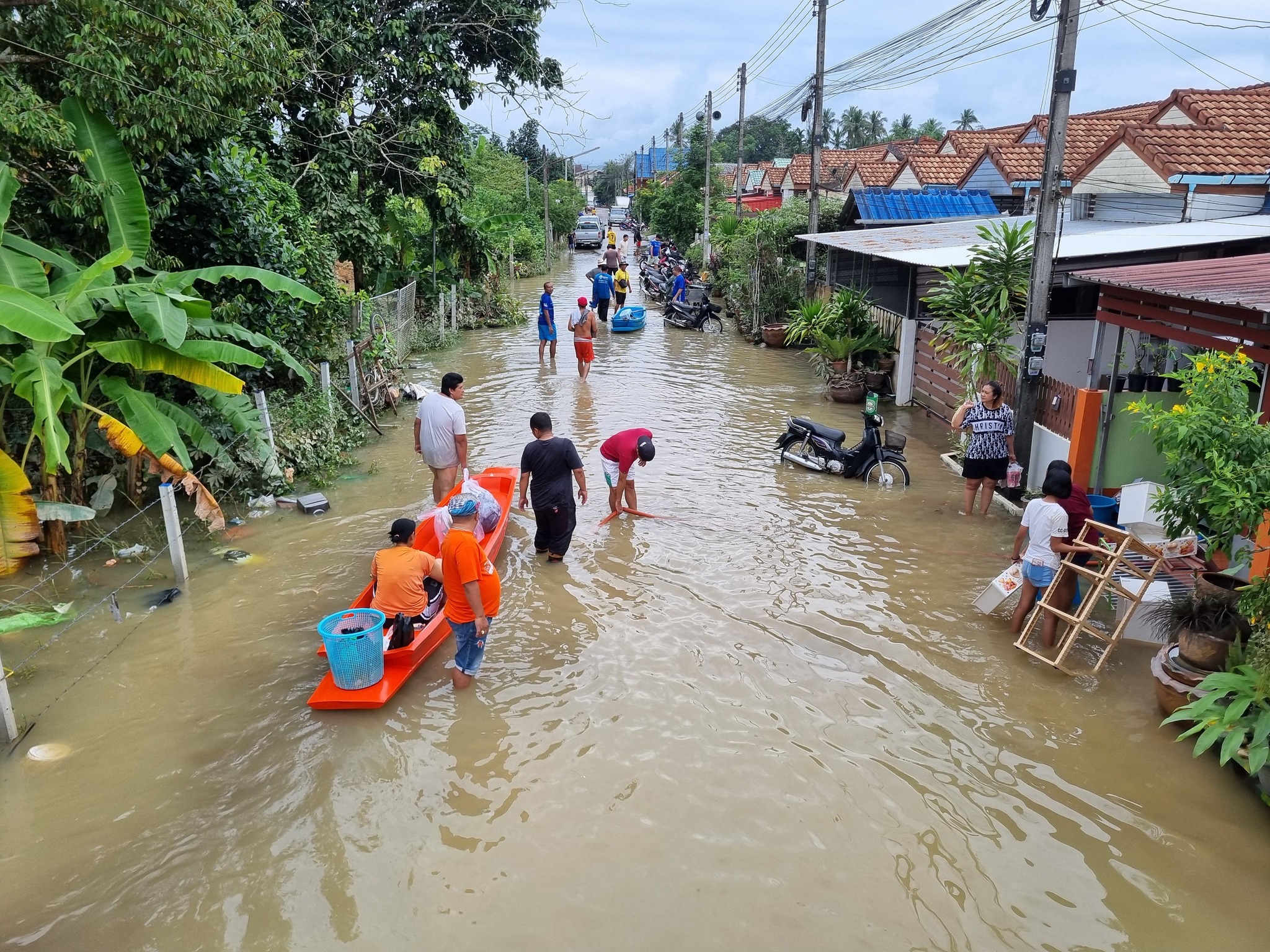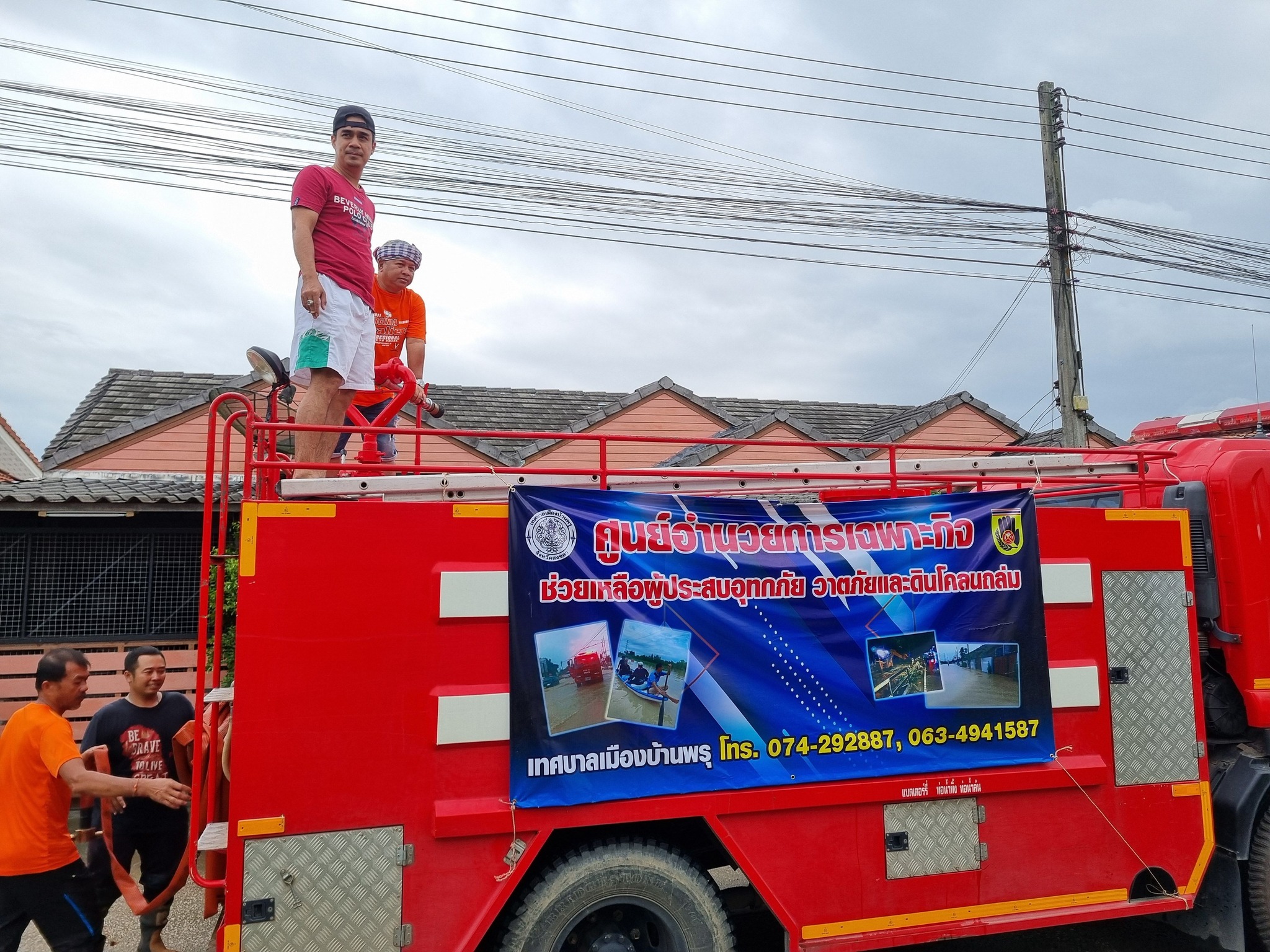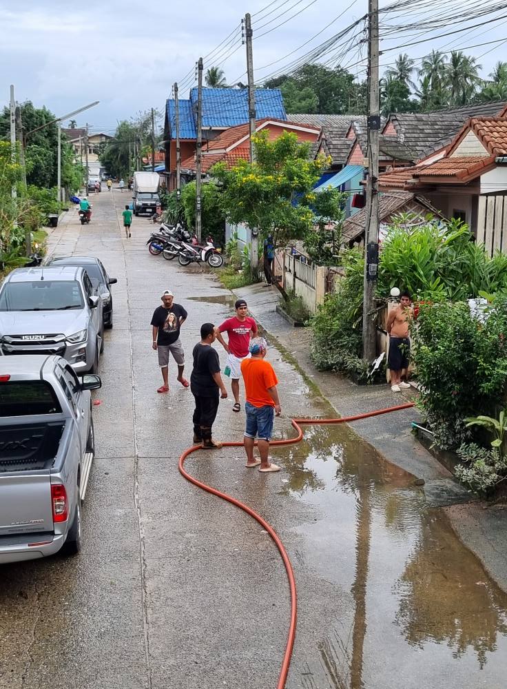 ปลัดจำเริญ สุดรามและทีมงานดับเพลิงลงพื้นที่ช่วยเหลือนำน้ำใช้ให้พี่น้องหมู่บ้านสกุลทอง