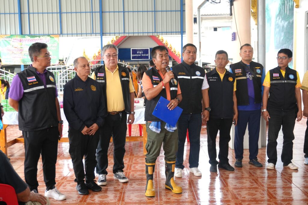 วันที่ 1 ธันวาคม 2567 เวลา 09.30 น. นายวินัย รัตนพันธ์ นายกเทศมนตรีเมืองบ้านพรุ พร้อมด้วยคณะผู้บริหาร สมาชิกสภาเทศบาล นายศุภวัฒน์ กลับกลาย สมาชิกสภาองค์การบริหารส่วนจังหวัดสงขลา นายเอก ยังอภัย ณ สงขลา นายอำเภอหาดใหญ่ และเจ้าหน้าที่จากสภ.ทุ่งลุง ร่วมต้อนรับ นายโชตินรินทร์ เกิด ผู้ว่าราชการจังหวัดสงขลา พร้อมด้วยนางปวีณ์ริศา เกิดสม ประธานแม่บ้านมหาดไทยจังหวัดสงขลา นายเศวต เพชรนุ้ย รองผู้ว่าราชการจังหวัดสงขลา นายจิรวัตร์ มณีโชติ นายรองผู้ว่าราชการจังหวัด นายวิทยา จันทน์เสนะ รองผู้ว่าราชการจังหวัดสงขลา นางอังคณา ทองขาว นายกกิ่งกาชาดอำเภอนาทวี และนายวรพันธุ์ สุวรรณยุหะ ปลัดจังหวัดสงขลา เข้าเยี่ยมเยียนประชาชนผู้ได้รับผลกระทบจากภัยน้ำท่วม ณ ศูนย์พักพิงชั่วคราว ที่วัดเทพชุมนุม เพื่อเป็นขวัญกำลังใจ พร้อมมอบอาหารและยารักษาโรคให้แก่ผู้ประสบภัยในครั้งนี้