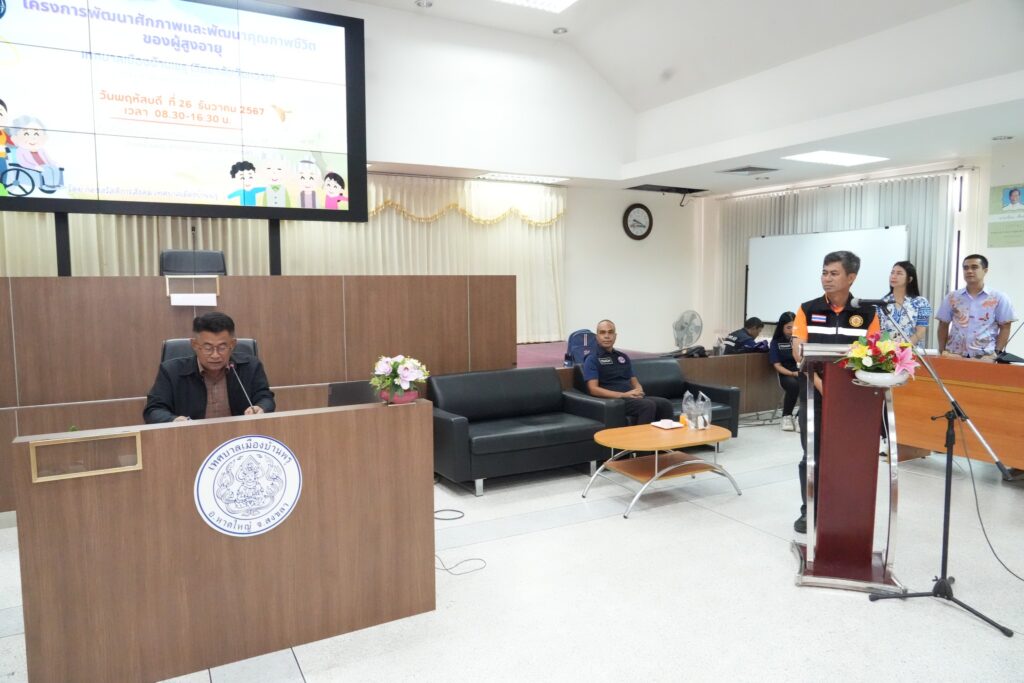 วันที่ 26/12/67 #เทศบาลเมืองบ้านพรุ นำโดยนายวินัย รัตนพันธ์ นายกเทศมนตรีเมืองบ้านพรุ มอบหมายให้ นายธีรยุทธ์ เบ็ญล่าเต๊ะ รองนายกเทศมนตรีเมืองบ้านพรุ เป็นประธานในพิธีเปิด #โครงการพัฒนาศักยภาพและพัฒนาคุณภาพชีวิตของผู้สูงอายุเทศบาลเมืองบ้านพรุ ( #วิทยาลัยวัยหวาน ) ประจำปีงบประมาณ 2568 ใน #กิจกรรมอบรมการปฐมนิเทศ #และการแลกเปลี่ยนเรียนรู้การเป็นผู้สูงอายุอย่างมีคุณภาพ ณ ห้องประชุมสภาเทศบาลเมืองบ้านพรุ ชั้น 5 ต.บ้านพรุ อ.หาดใหญ่ จ.สงขลา