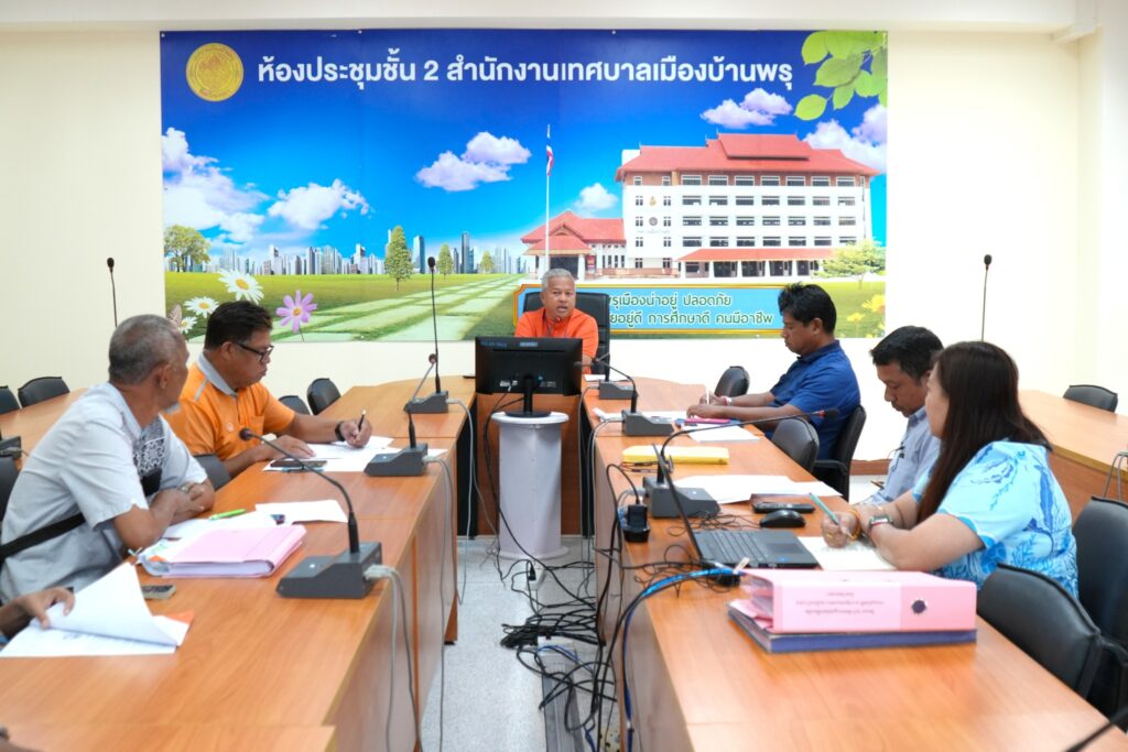 วันที่ 17 กรกฎาคม 2568 เวลา 09.30 น. ณ ห้องประชุมชั้น 2 สำนักงานเทศบาลเมืองลบ้านพรุ นายจำเริญ สุดราม ปลัดเทศบาลเมืองบ้านพรุ ประชุมคณะกรรมการตรวจงานก่อสร้างและบริหารจัดการโครงการกำจัดขยะมูลฝอยเพื่อผลิตกระแสไฟฟ้าจากชุมชนเทศบาลเมืองบ้านพรุ จังหวัดสงขลา เพื่อติดตามความคืบหน้าการก่อสร้างโครงการดังกล่าว