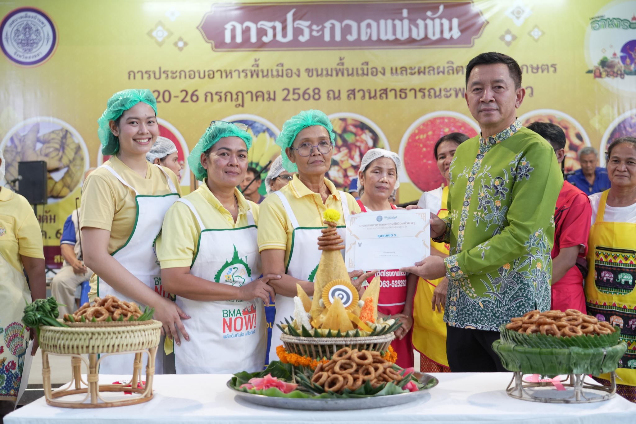 วันที่25 /07/68 นายอดินันท์ หนูอุไร นายกเทศมนตรีเมืองบ้านพรุ มอบรางวัล #การแข่งขันขนมเจาะหู ในงานเฉลิมพระเกียรติพระบาทสมเด็จพระเจ้าอยู่หัว และ งานมหกรรมอาหารและของดีเมืองบ้านพรุ ระหว่างวันที่ 20 – 28 กรกฎาคม 2568 ณ ตลาดน้ำบ้านพรุ