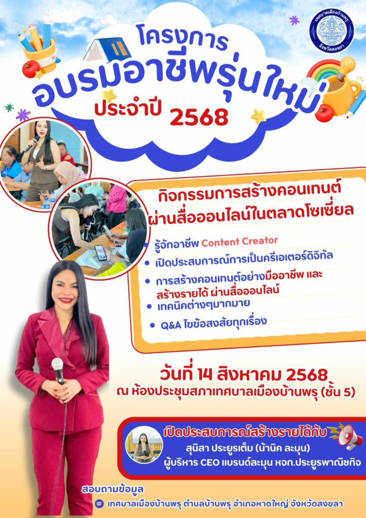 🎈มาร่วมสร้างคอนเทนต์กัน ในวันที่ 14 สิงหาคม 2568 ณ ห้องประชุม ชั้น 5 สำนักงานเทศบาลเมืองบ้านพรุ🎈