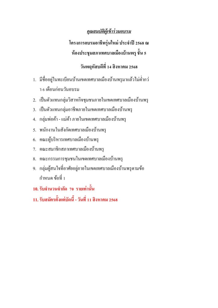 🚩 สมัครออนไลน์ ในกล่องข้อความ เพจเทศบาลเมืองบ้านพรุ