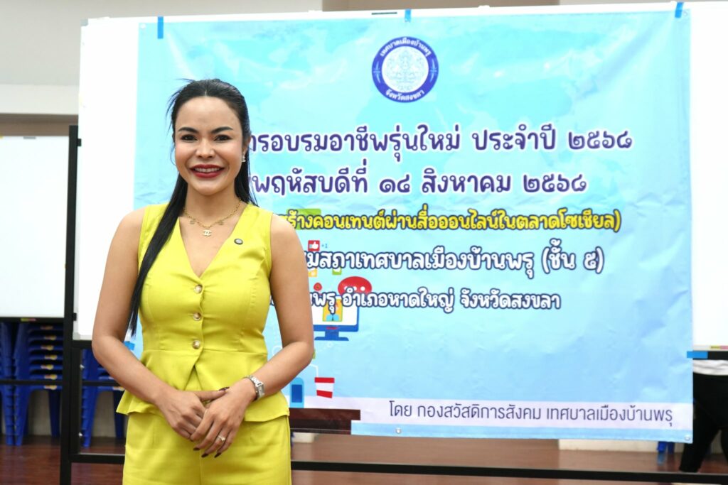 🚩วันที่ 14 สิงหาคม 2568 เวลา 09.00 น. ณ ห้องประชุมชั้น 5 สำนักงานเทศบาลเมืองบ้านพรุ นายอดินันท์ หนูอุไร นายกเทศมนตรีเมืองบ้านพรุ มอบหมายให้ รองทวิ นายทวิ ถาวรจิตร รองนายกเทศมนตรีเมืองบ้านพรุ เป็นประธาน พร้อมด้วยคณะผู้บริหาร สมาชิกสภาเทศบาล หัวหน้าส่วนราชการ เจ้าหน้าที่กองสวัสดิการสังคม และผู้สนใจ เข้าร่วมโครงการอบรมอาชีพรุ่นใหม่ ประจำปี 2568 (กิจกรรมการสร้างคอนเทนต์ผ่านสื่ออนไลน์ในตลาดโซเชียล) เพื่อเรียนรู้เทคนิค พัฒนาทักษะ แนวทางการสร้างคอนเทนต์ สร้างงาน สร้างอาชีพ สร้างรายได้ โดยวิทยากร นาวสาวสุนิสา ประยูรเต็ม หรือ น้านิค ละมุน ผู้บริหาร CEO แบรนด์ละมุน หจก.ประยูรพาณิชกิจ และทีมงาน สร้างความสนุกสนาน สร้างงานฉบับมืออาชีพให้แก่ผู้เข้าร่วมกิจกรรมในวันนี้เป็นอย่างมาก