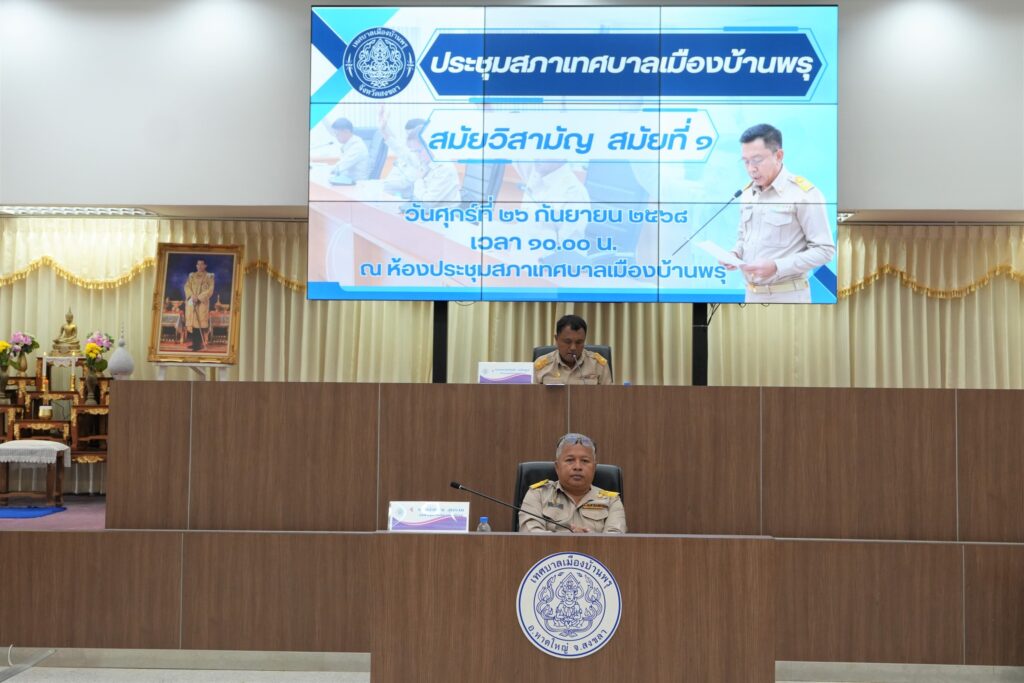 🚩วันที่ ๒๖ สิงหาคม ๒๕๖๘ เวลา ๑๐.๐๐ น. เทศบาลเมืองบ้านพรุ จัดประชุมสภาเทศบาลเมืองบ้านพรุ สมัยวิสามัญ สมัยที่ ๑ ประจำปี พ.ศ. ๒๕๖๘ ณ ห้องประชุมสภาเทศบาลเมืองบ้านพรุ