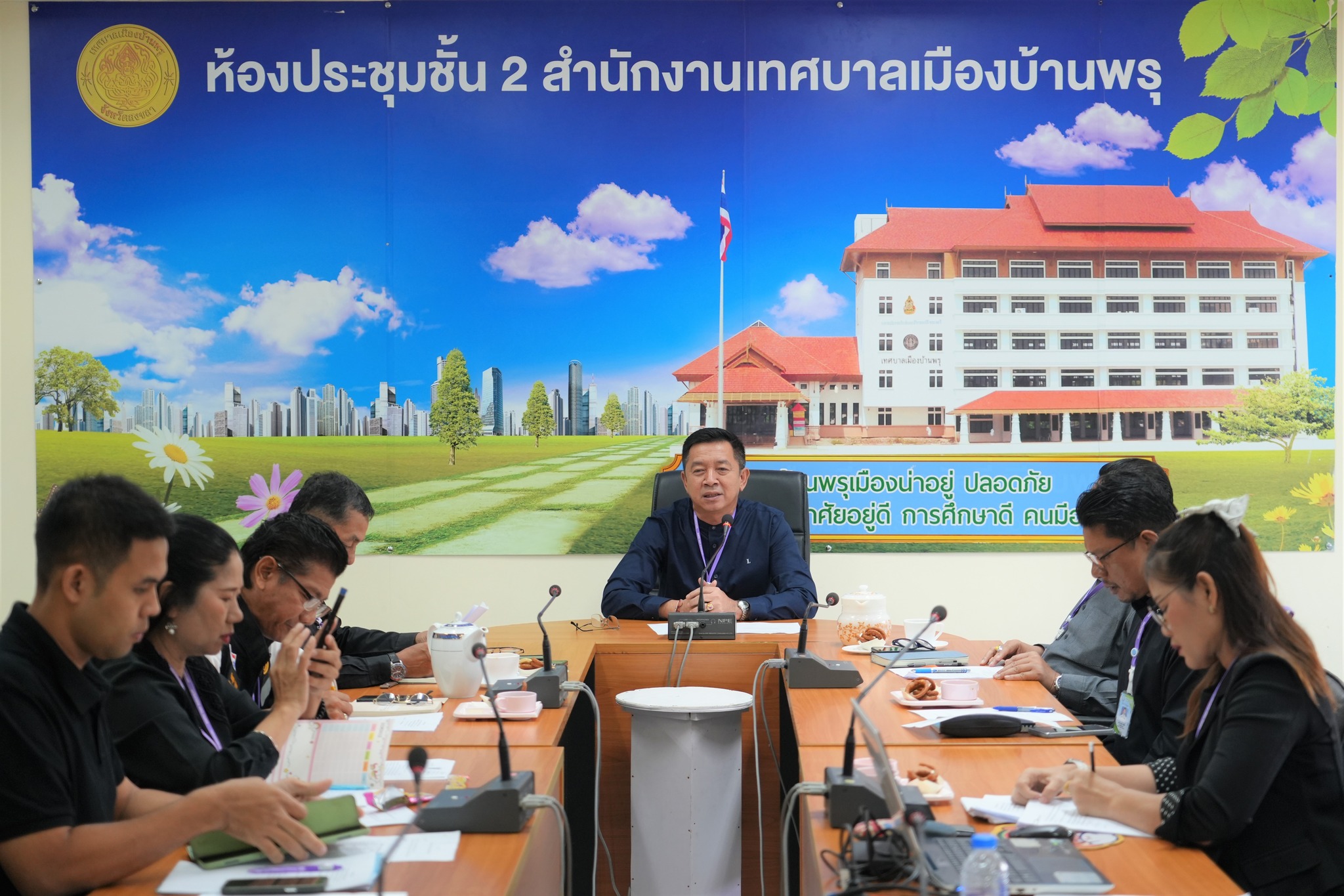 วันที่ 13 พฤศจิกายน 2568 เวลา 09.00 น. ณ ห้องประชุม ชั้น 2 สำนักงานเทศบาลเมืองบ้านพรุ นายอดินันท์ หนูอุไร นายกเทศมนตรีเมืองบ้านพรุ เป็นประธาน พร้อมด้วยคณะผู้บริหาร เจ้าหน้าที่เกษตรอำเภอหาดใหญ่ คณะกรรมการกลุ่มเศรษฐกิจพอเพียงเทศบาลเมืองบ้านพรุ เจ้าหน้าที่กองสวัสดิการสังคมร่วมประชุมปรึกษาหารือในการดำเนินการของกลุ่มเศรษฐกิจพอเพียงเทศบาลเมืองบ้านพรุ และจัดตั้งกลุ่มเศรษฐกิจพอเพียงเทศบาลเมืองบ้านพรุ เพื่อสร้างเครือข่ายความร่วมมือในชุมชนเป็นกลไกขับเคลื่อนการพัฒนาเศรษฐกิจฐานรากและยกระดับคุณภาพชีวิตของประชาชนในพื้นที่ให้มั่นคง