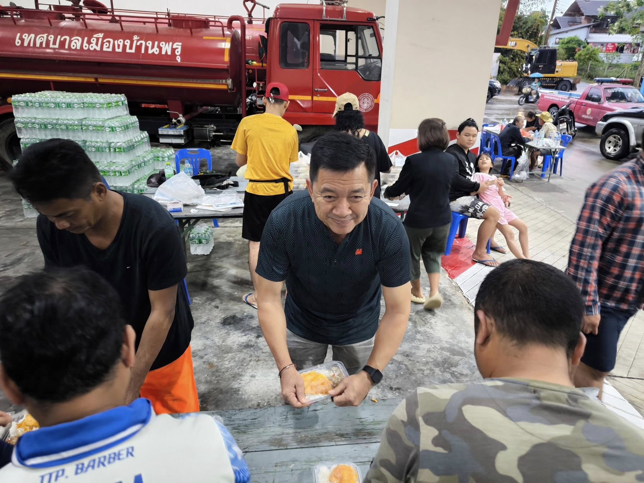 อาหารรอบค่ำ นำโดย นายก ดิ พร้อมพนักงาน จิตอาสา ร่วมด้วยช่วยกันพร้อมส่งอาหาร