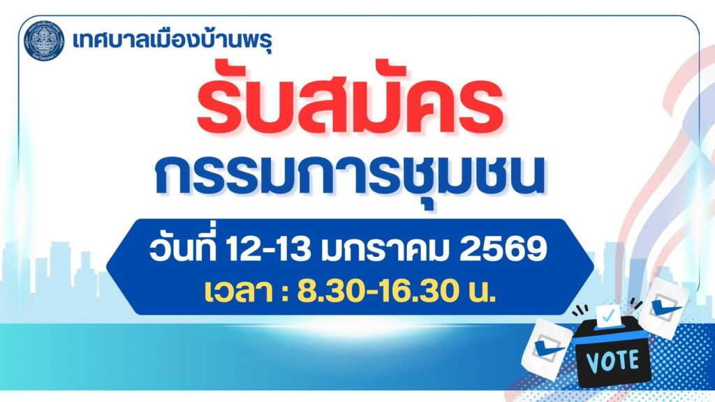 ♥️ วันที่ 12/01/69 #เทศบาลเมืองบ้านพรุ นำโดย นายอดินันท์ หนูอุไร นายกเทศมนตรีเมืองบ้านพรุ พร้อมด้วย คณะทำงาน กองสวัสดิการสังคม เทศบาลเมืองบ้านพรุ #เปิดรับสมัครกรรมการชุมชน ระหว่างวันที่ 12 – 13 มกราคม 2569 เวลา 08:30 น. – 16.30น. ณ สำนักงานเทศบาลเมืองบ้านพรุ ชั้น 1 #และจะทำการเลือกกรรมการชุมชน ในวันพฤหัสบดีที่ 22 มกราคม 2569 นี้.