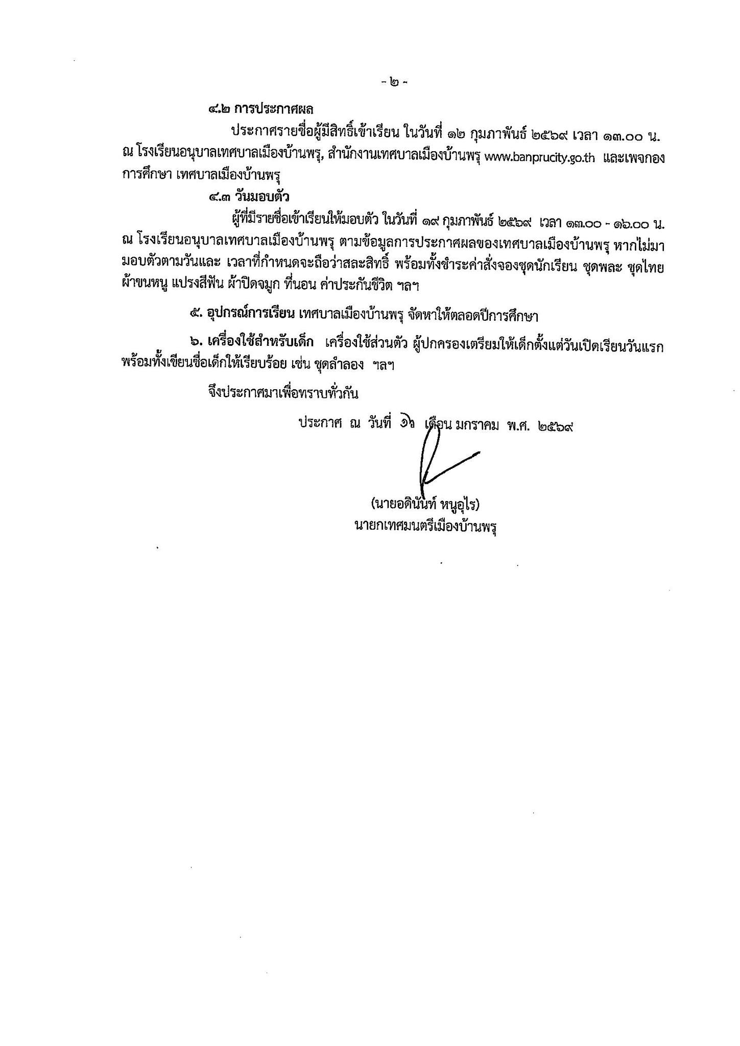 📌 วันที่ 16/01/69 #เทศบาลเมืองบ้านพรุ นำโดยนายอดินันท์ หนูอุไร นายกเทศมนตรีเมืองบ้านพรุ ออกประกาศเทศบาลเมืองบ้านพรุ🖊️