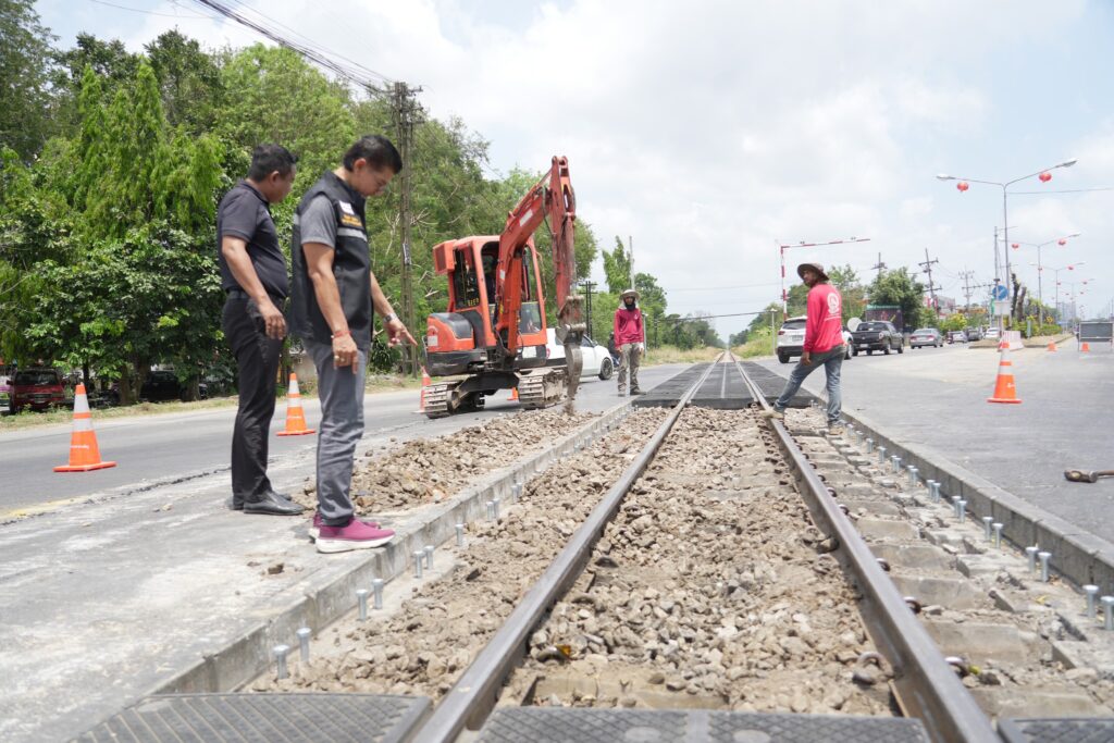 นที่ 10/03/69 #เทศบาลเมืองบ้านพรุ นำโดยนายอดินันท์ หนูอุไร นายกเทศมนตรีเมืองบ้านพรุ มอบหมายให้ นายวีรชัย ชีวะเสรีชล ที่ปรึกษานายกเทศมนตรีเมืองบ้านพรุ , นายชัยยุทธ บุญสว่าง เลขานุการฯ , นายอมรชัย ศิลปพรหม เลขานุการฯ ลงพื้นที่ตรวจเยี่ยม เจ้าหน้าซ่อมบำรุงทางรถไฟจาก #การรถไฟแห่งประเทศไทย ที่มาทำการซ่อมแซม จุดตัดทางพาดรถไฟบ้านพรุ เปลี่ยนวัสดุแผ่นยางปูพื้นใหม่ เทศบาลเมืองบ้านพรุขอขอบคุณทางการรถไฟแห่งประเทศไทยมา ณ โอกาศนี้ด้วยครับ