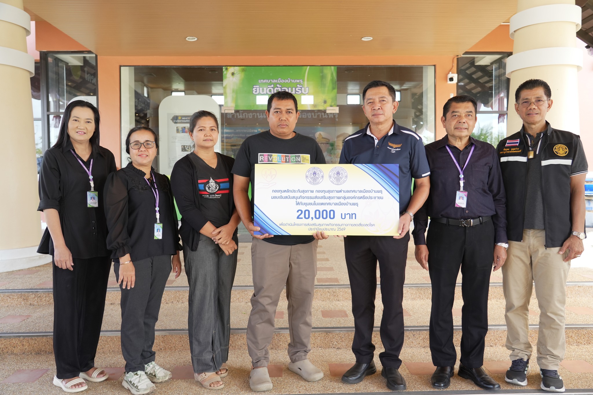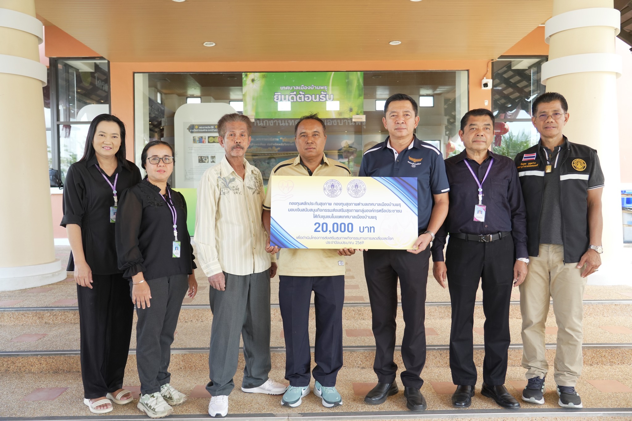วันที่ 13/03/69 #เทศบาลเมืองบ้านพรุ โดยนาย อดินันท์ หนูอุไร นายกเทศมนตรีเมืองบ้านพรุ พร้อมด้วย นายกฤษณ์สมบัติ สาลิกา รองนายกเทศมนตรีเมืองบ้านพรุ , นายชัยยุทธ บุญสว่าง เลขานุการฯ ,นางชนกพร อาหวัง ผอ.กองสาธารณสุขและสิ่งแวดล้อม , นางสาวทัศนีย์ ศรีญาณลักษณ์ หน.ฝ่ายบริการสาธารณสุข และคณะทำงานกองทุนหลักประกันสุขภาพ เทศบาลเมืองบ้านพรุ #ร่วมมอบเงินจำนวน 20,000 บาท ให้กับคณะกรรมการชุมชนทั้ง 11 ชุมชน เพื่อดำเนินโครงการส่งเสริมสุขภาพ กิจกรรมทางกายลดเสี่ยงลดโรค ประจำปีงบประมาณ 2569 ของ #กองทุนหลักประกันสุขภาพ #กองทุนสุขภาพตำบลเทศบาลเมืองบ้านพรุ เพื่อสนับสนุนกิจกรรมส่งเสริมสุขภาพกลุ่มองค์กรหรือประชาชน ให้กับชุมชนในเขตเทศบาลเมืองบ้านพรุ