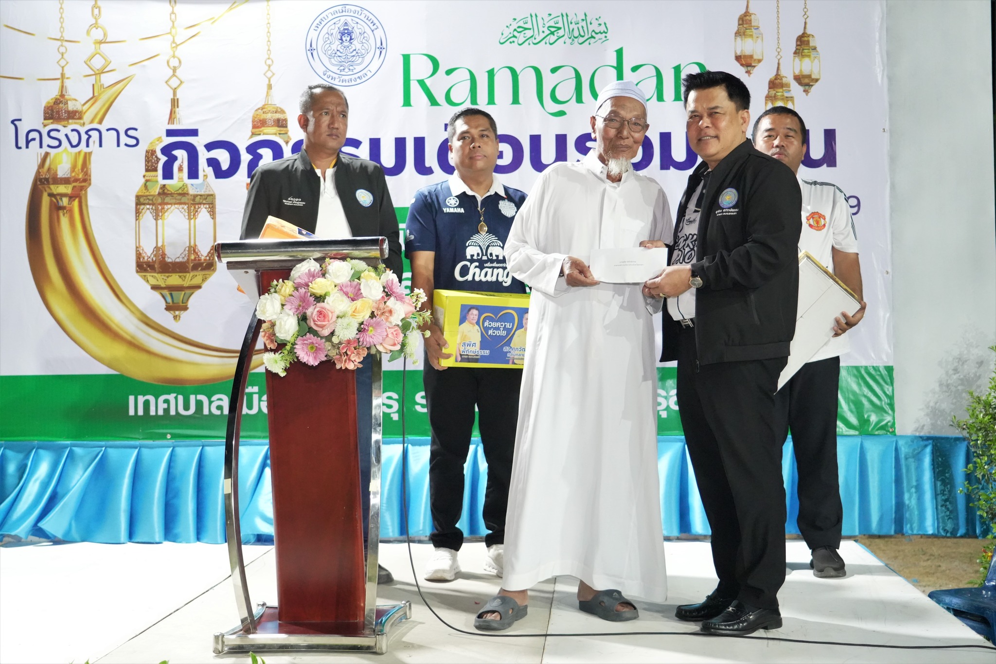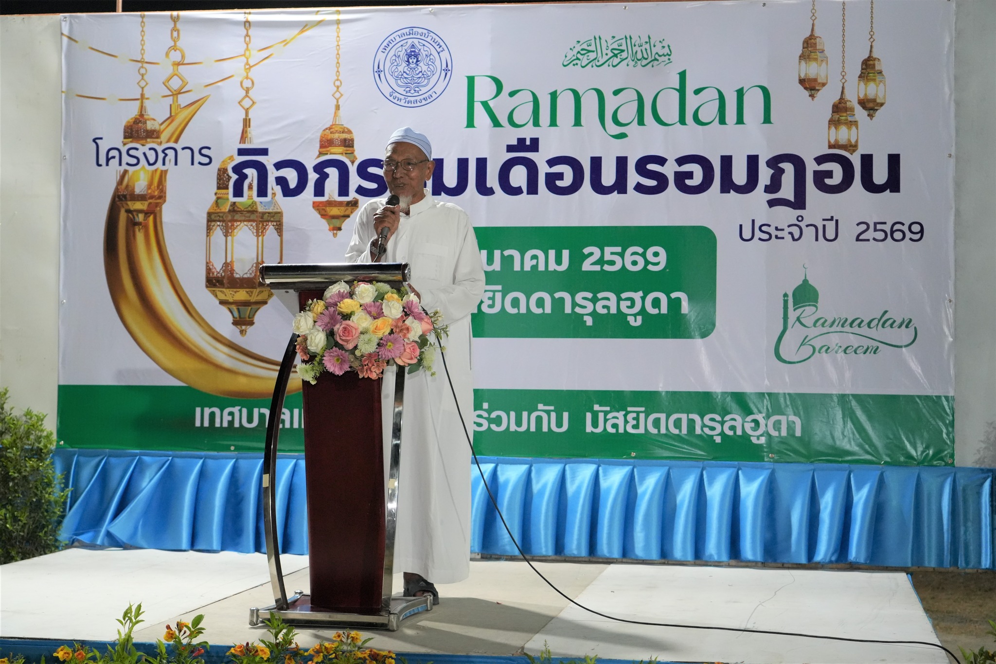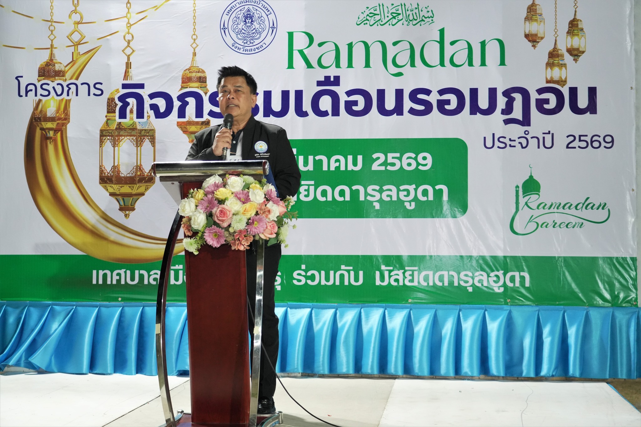 วันที่ 13 มีนาคม 2569 เวลา 18.30 น. ณ มัสยิดดารุลฮูดา บ้านโปะหมอ นายอดินันท์ หนูอุไร นายกเทศมนตรีเมืองบ้านพรุ พร้อมคณะผู้บริหาร สมาชิกสภาเทศบาล หัวหน้าส่วนราชการ พนักงานเทศบาล และคณะกรรมการชุมชน ให้การต้อนรับนายสุพิศ พิทักษ์ธรรม นายกองค์การบริหารส่วนจังหวัดสงขลา พร้อมด้วยสมาชิกสภาจังหวัดสงขลา นายศุภวัฒน์ กลับกลาย ดร.นรุตม์ชัย สอนคง นายคุณกฤต เกิดสุวรรณ และพันตำรวจเอกสุวโรจน์ ลุนหวิทยานนท์ รองผู้บังคับการตำรวจภูธรจังหวัดสงขลา รักษาราชการ แทนผู้กำกับการสถานีตำรวจภูธรทุ่งลุง ที่ได้เป็นเกียรติ ร่วมให้กำลังใจ ส่งเสริมสนับสนุนการปฏิบัติศาสนกิจในช่วงละศีลอด เพื่อสานสัมพันธ์อันดีระหว่างพี่น้องมุสลิมในเขตเทศบาลเมืองบ้านพรุ พร้อมรับประทานอาหารร่วมกัน พบปะพูดคุยแลกเปลี่ยนความคิดเห็นระหว่างผู้บริหารกับพี่น้องชาวมุสลิม