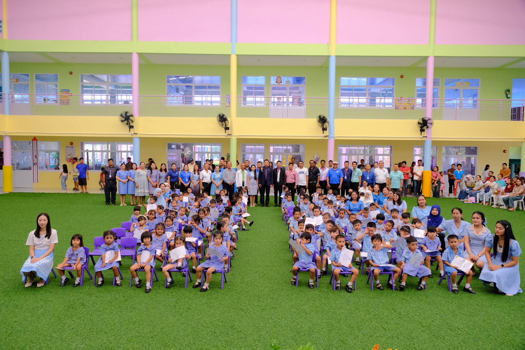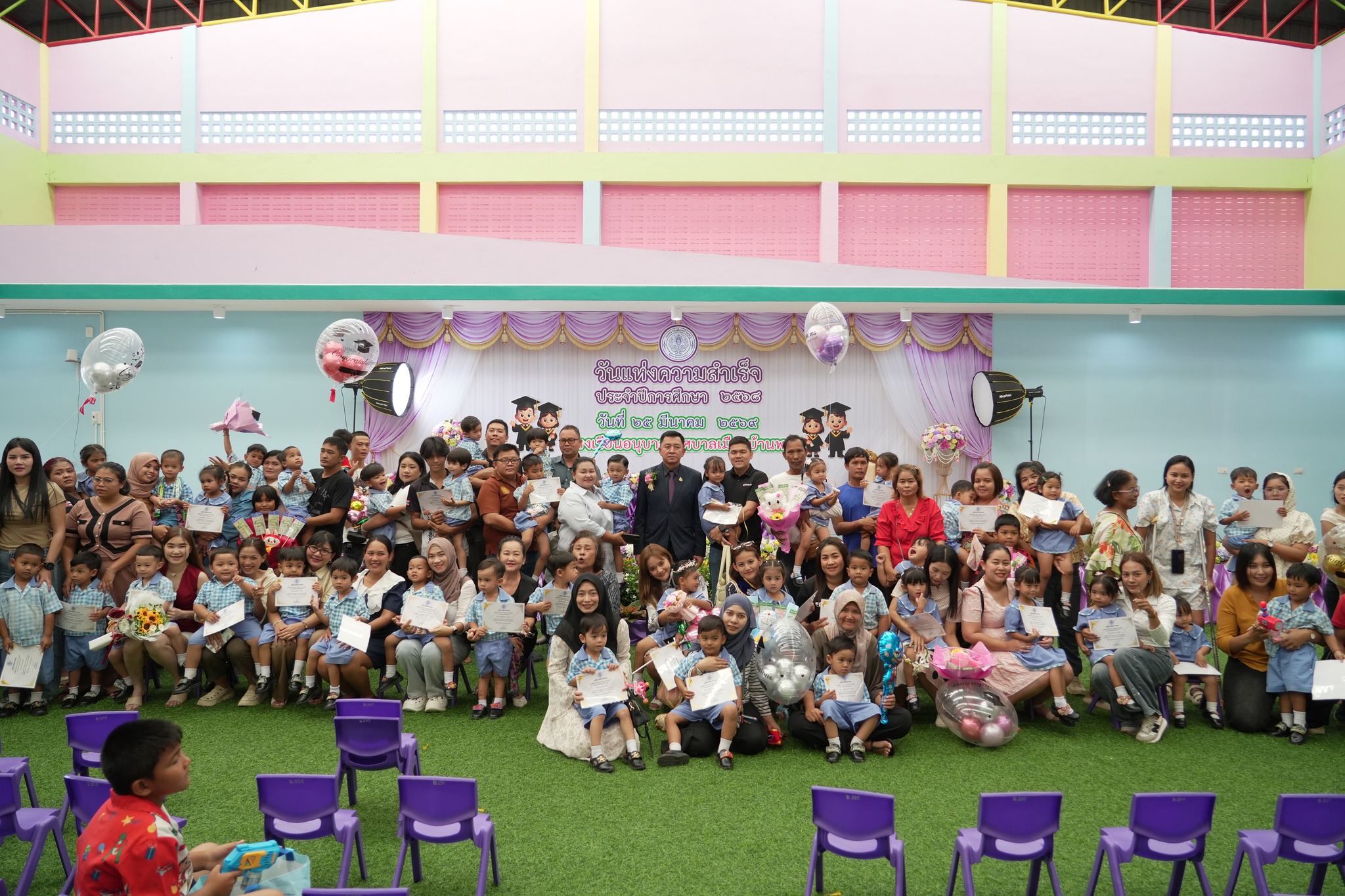 ❤️เวลา 09.00น. นายอดินันท์ หนูอุไร นายกเทศมนตรีเมืองบ้านพรุ เป็นประธานในพิธีมอบวุฒิบัตร ให้น้องๆ ก่อนปฐมวัย จำนวน 112 ราย โดยมีนักเรียนและผู้ปกครองเข้าร่วมพิธี และนางอิสราภาพ์ คเชนทองสุวรรณ์ ผู้อำนวยการกองการศึกษา กล่าวรายงานต่อประธานในพิธี หลังจากนั้นเข้าสู้พิธีการมอบวุฒิบัตร พร้อมร่วมบันทึกภาพแห่งความทรงจำ ถ่ายภาพร่วมกันเป็นอันเสร็จสิ้นพิธีการมอบวุฒิบัตร.