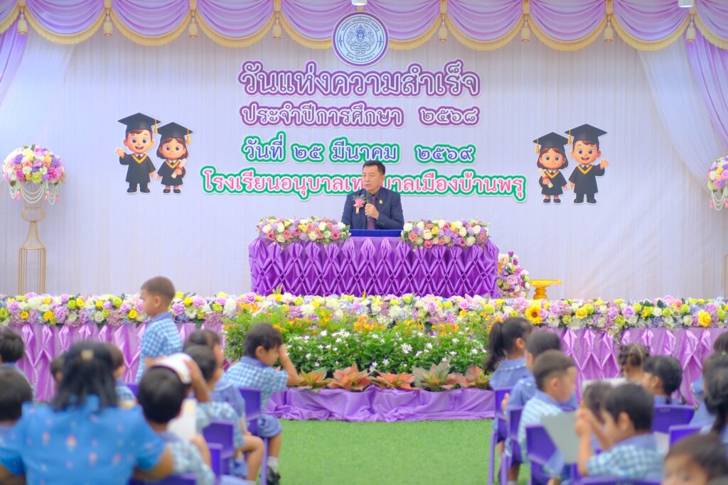วันที่ 24/03/69 #เทศบาลเมืองบ้านพรุ นำโดยนายอดินันท์ หนูอุไร นายกเทศมนตรีเมืองบ้านพรุ พร้อมด้วยคณะผู้บริหาร , สมาชิกสภาเทศบาล ,คณะกรรมการสถานศึกษาเทศบาลเมืองบ้านพรุ , หัวหน้าส่วนราชการ ,บุคลากรทางการศึกษาเทศบาลเมืองบ้านพรุ #เข้าร่วมพิธีมอบวุฒิบัตร “วันแห่งความสำเร็จ” ประจำปีการศึกษา 2568 ในวันพุธที่ 25 มีนาคม 2569 ณ โรงเรียนอนุบาลเทศบาลเมืองบ้านพรุ