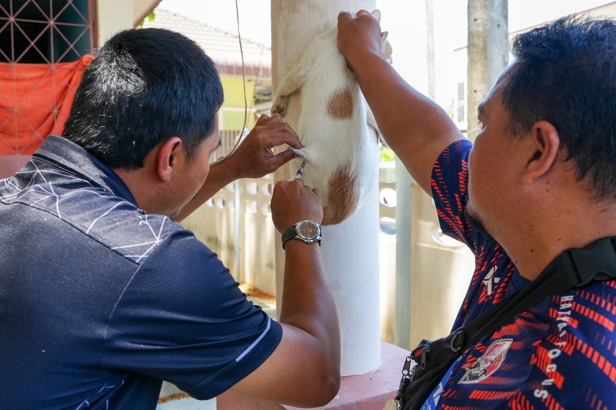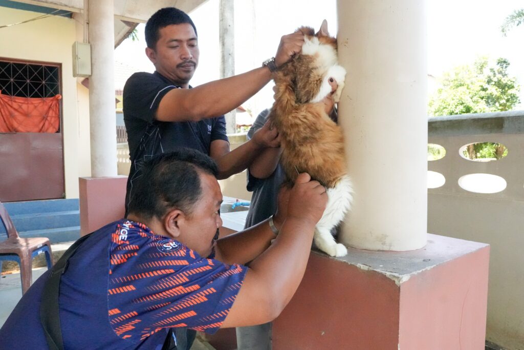 วันที่ 26 มีนาคม 2569 เวลา 13.00น. ณ วัดปทุมธาราวาส นำโดยน.ส.ทัศนีย์ ศรีญาณลักษณ์ หัวหน้าฝ่ายบริการสาธารณสุข และเจ้าหน้าที่งานป้องกันและควบคุมโรค รวมทั้งตัวแทนอสม. และคณะกรรมการชุมชนเขต 4 #ลงพื้นที่ ร่วมให้บริการ #ฉีดวัคซีนป้องกันโรคพิษสุนัขบ้า ประจำปี 2569 แก่สัตว์เลี้ยงลูกด้วยนม เพื่อป้องกันการเกิดโรคพิษสุนัขบ้าในชุมชน
