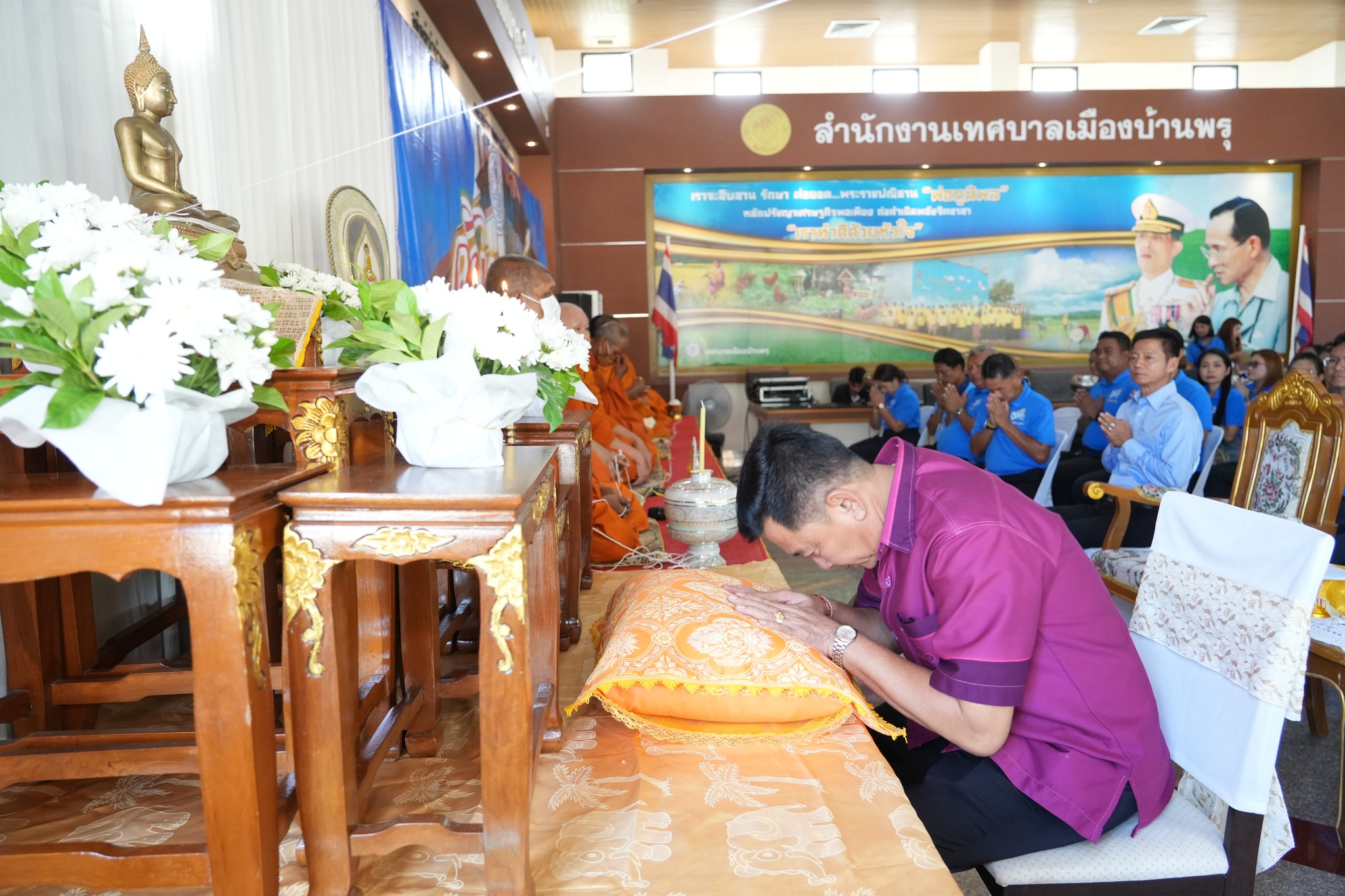 เข้าร่วมพิธีทำบุญตักบาตร ทางศาสนาพุทธ และ พิธีอ่านดุอาร์ ศาสนาอิสลาม #เนื่องในวันเทศบาล ณ สำนักงานเทศบาลเมืองบ้านพรุ ต.บ้านพรุ อ.หาดใหญ่ จ.สงขลา