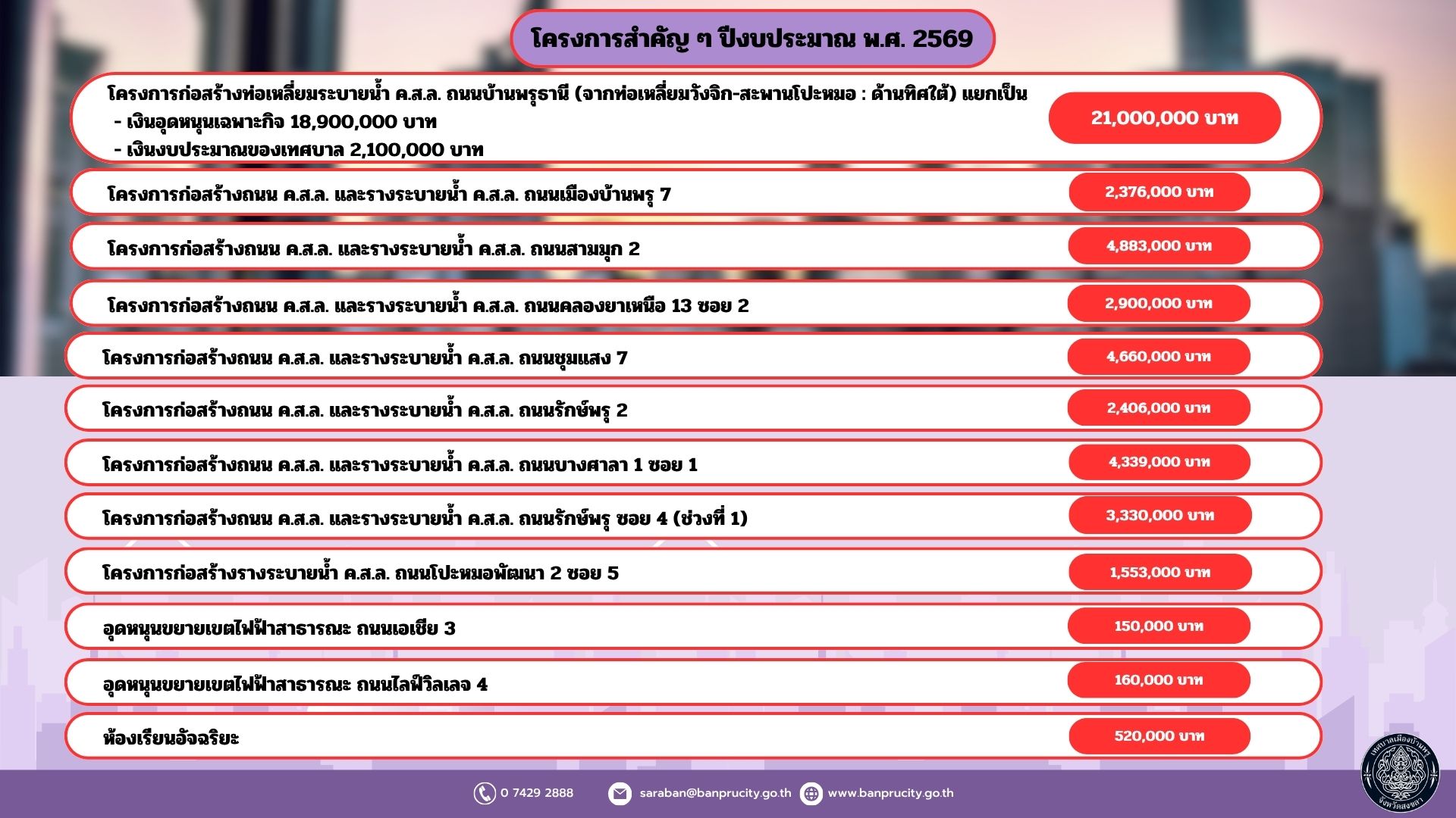 - สรุปโครงการที่สำคัญๆ และรายจ่ายเพื่อการลงทุน ที่จะดำเนินการประจำปีงบประมาณ พ.ศ.2569